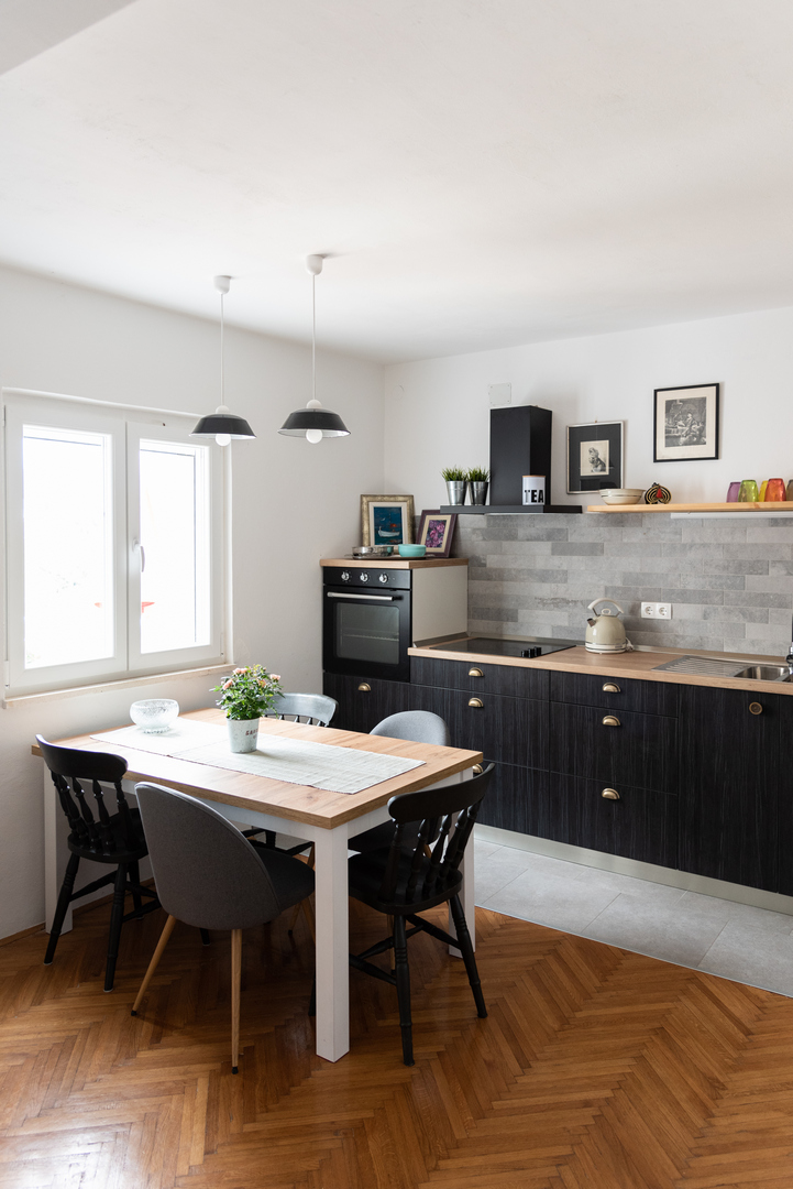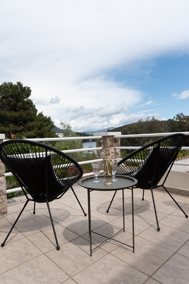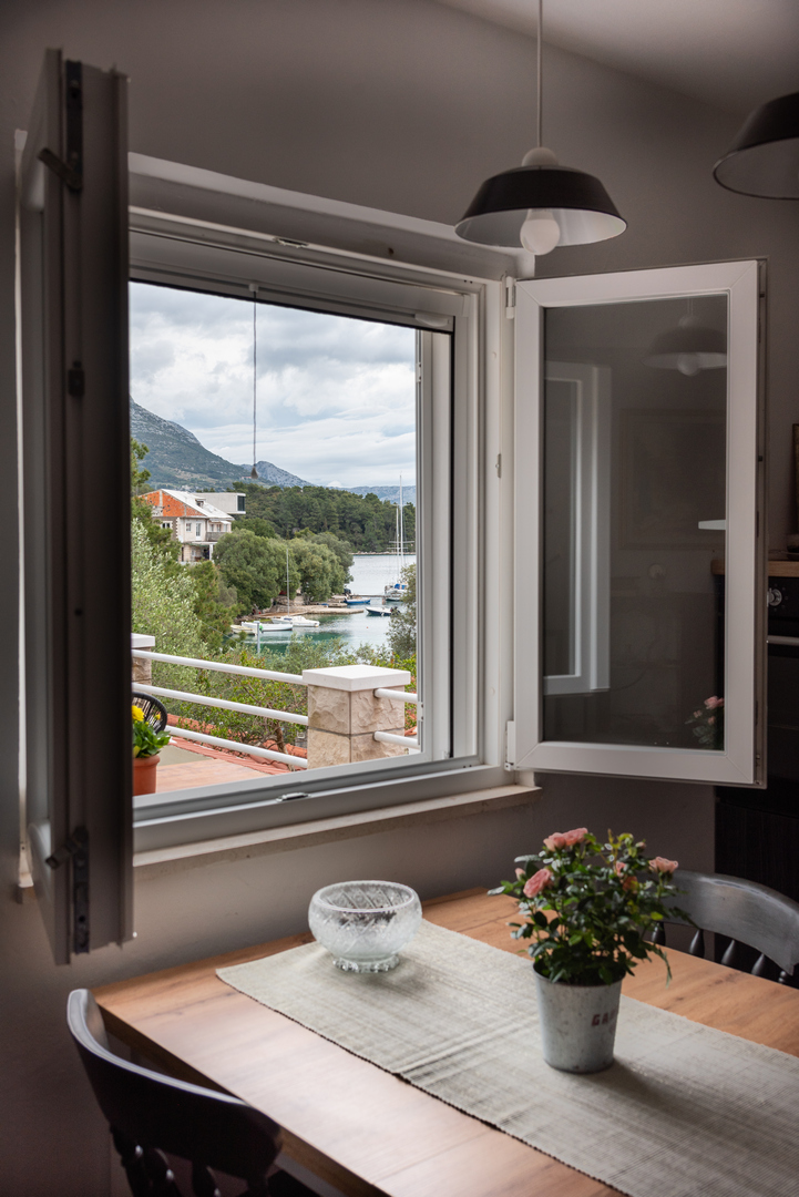 Apartment (55m2) is placed on first floor, includes one double bedroom, full equipped kitchen, dining room with extra bed, satellite TV and radio, air condition, bathroom/shower, terrace, parking place, 30 m away from the sea.