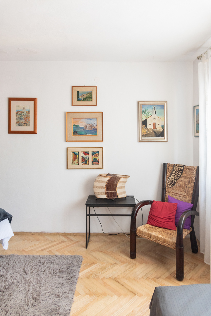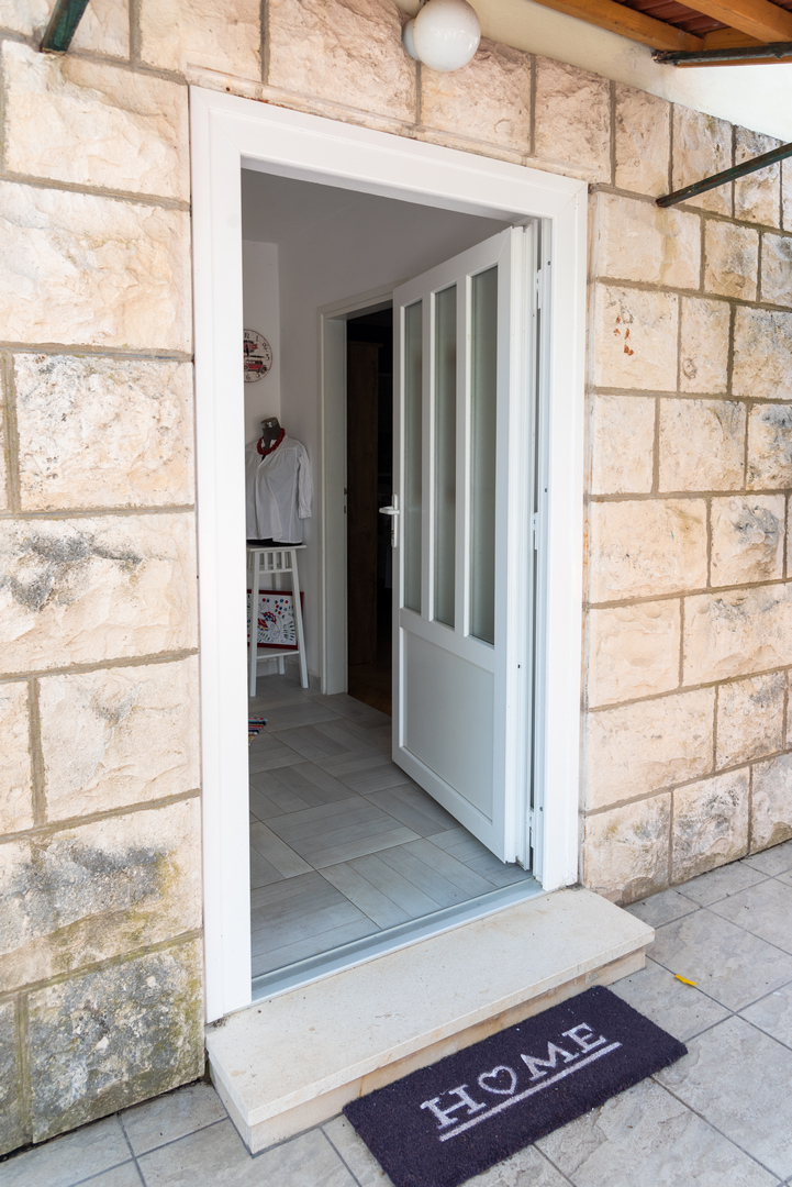 Apartment (45m2) is placed on ground floor, includes one double bedroom, full equipped kitchen, dining room with extra bed, satellite TV and radio, air condition, bathroom/shower, terrace, parking place, 30 m away from the sea.